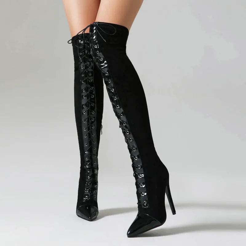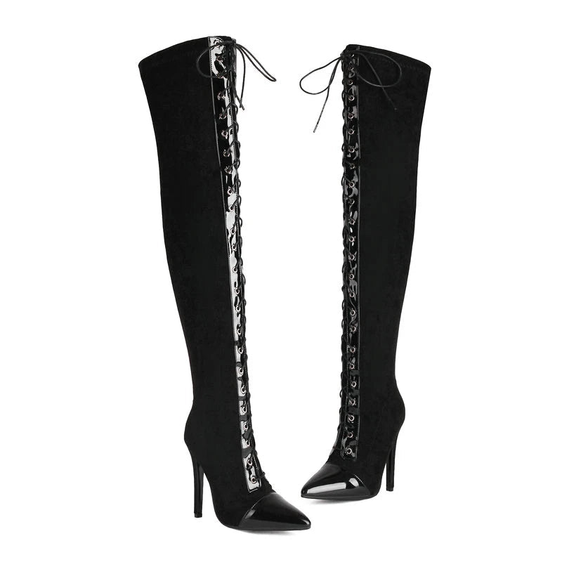 Women Long Boots Slim Knee Boots Nightclub Club Heels Ladies Shoes
