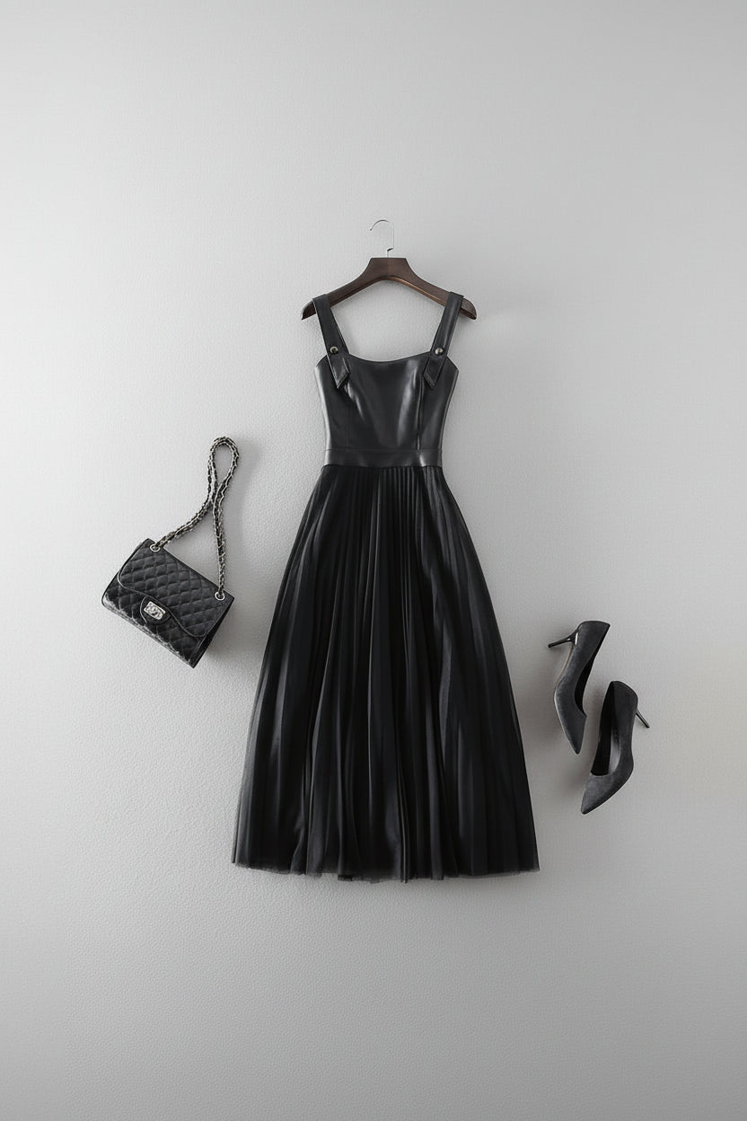 Slim and thin suspender skirt splicing pleated mesh Hepburn style dress women clothing