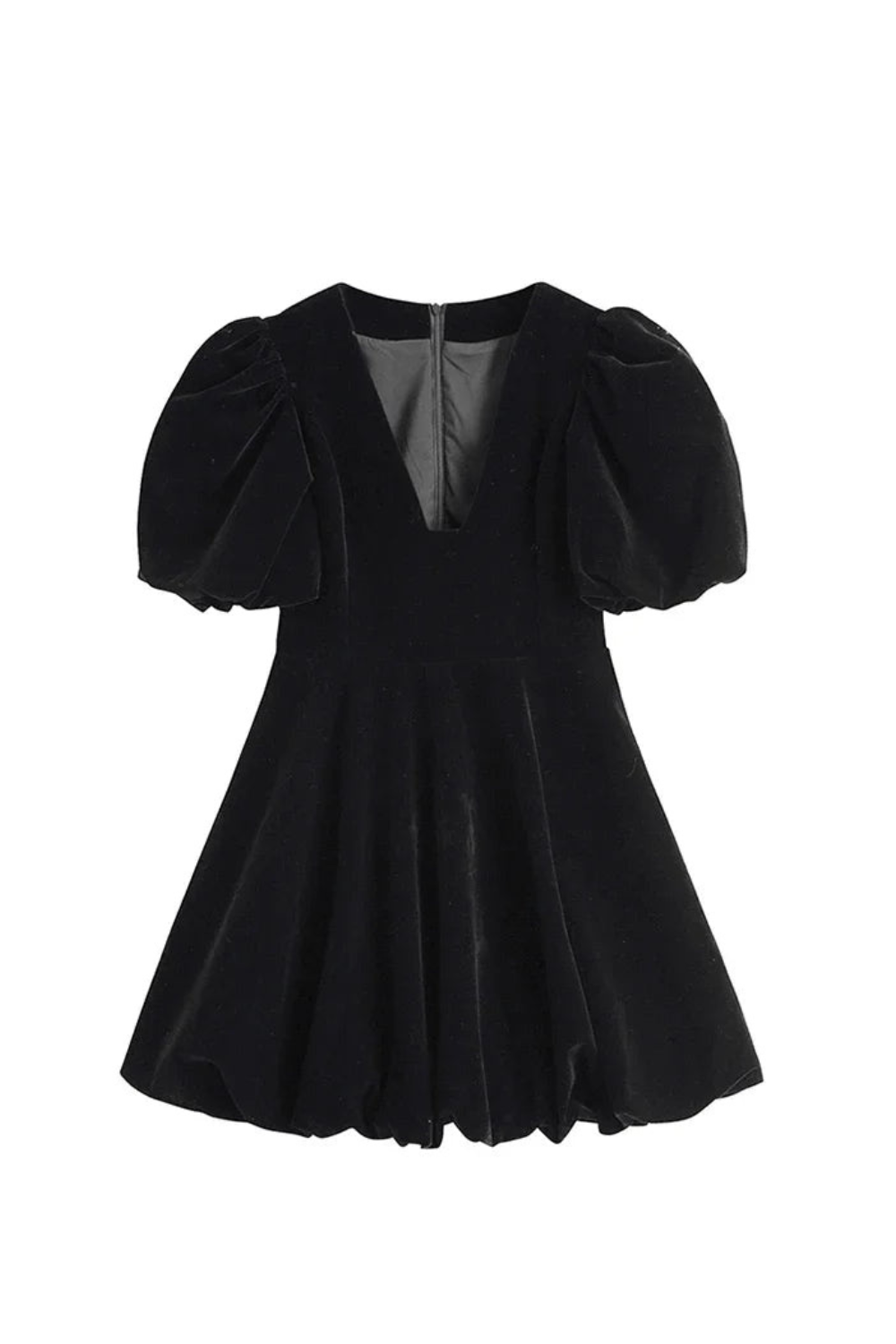 Dress Women Hepburn Flannel Dresses Puff Short Sleeve Elegant Fluffy Frocks