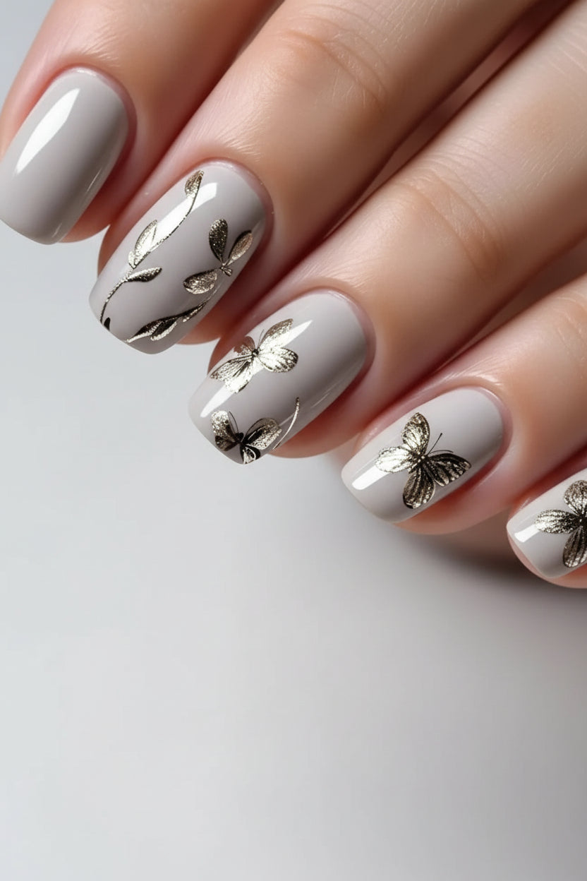 24 Pcs Nails for Gluing Short Square Nail Tips Gold Butterfly Flower Nails Press on Self-nail Removable
