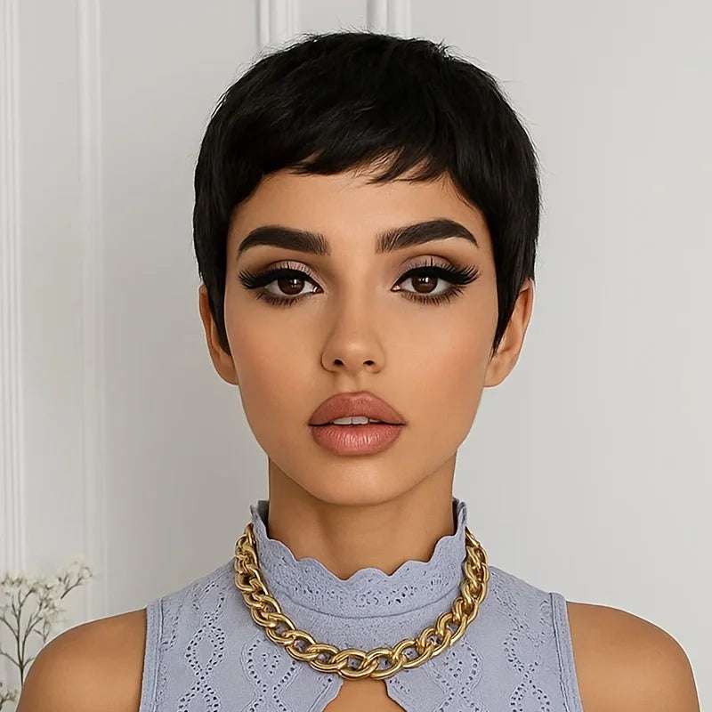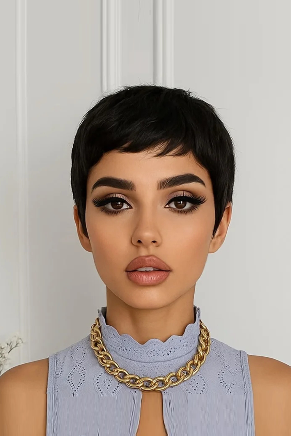 Black Short Straight Pixie Cut Bob Wig for Women Human Hair Versatile Daily Wigs