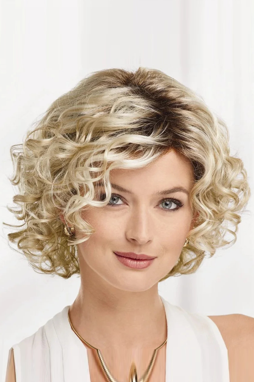 Hair Wig Short Curly Layered Wigs for White Women Dark Root Wigs with Bangs