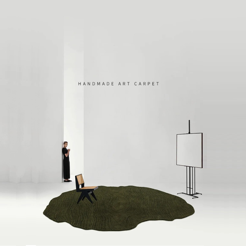 Handmade Irregular Carpet For Living Room Wool Polyester Rugs For Bedroom Home Retro Green Table Floor Mat