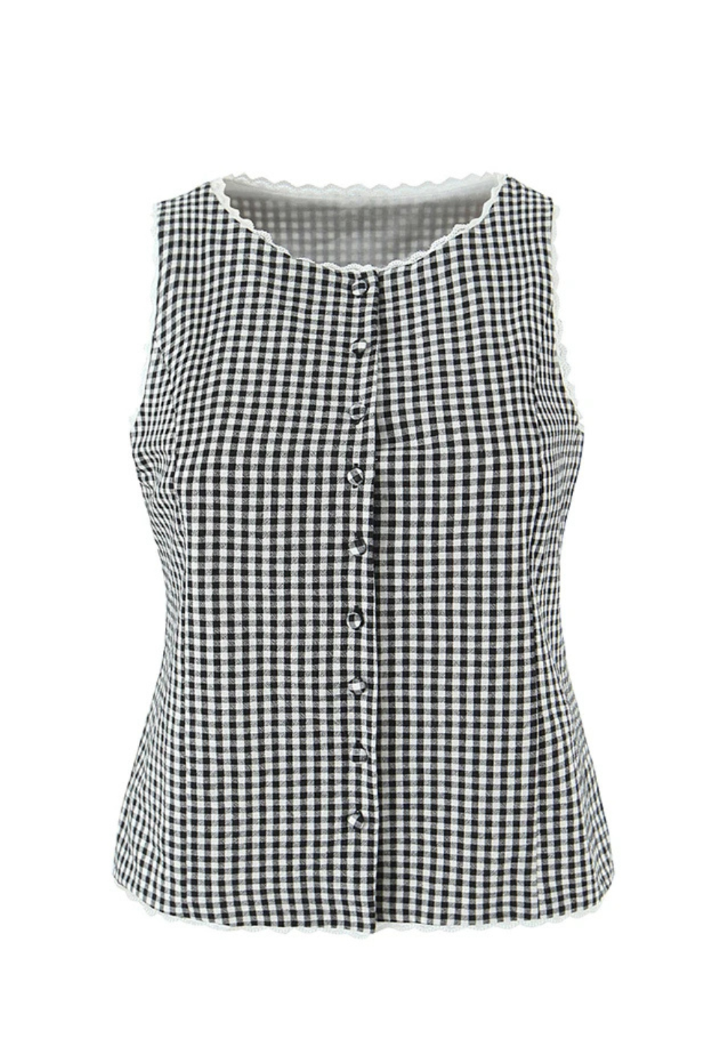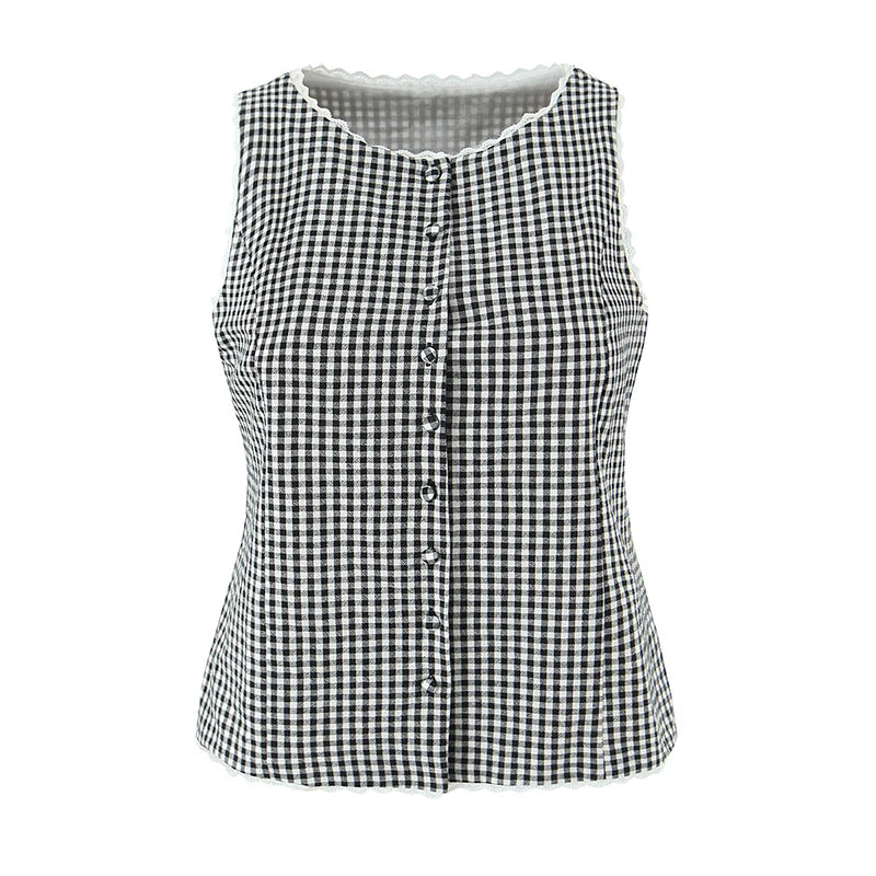 Retro Plaid Vest Women Lace Trim Sleeveless Versatile Casual Summer Tank Top