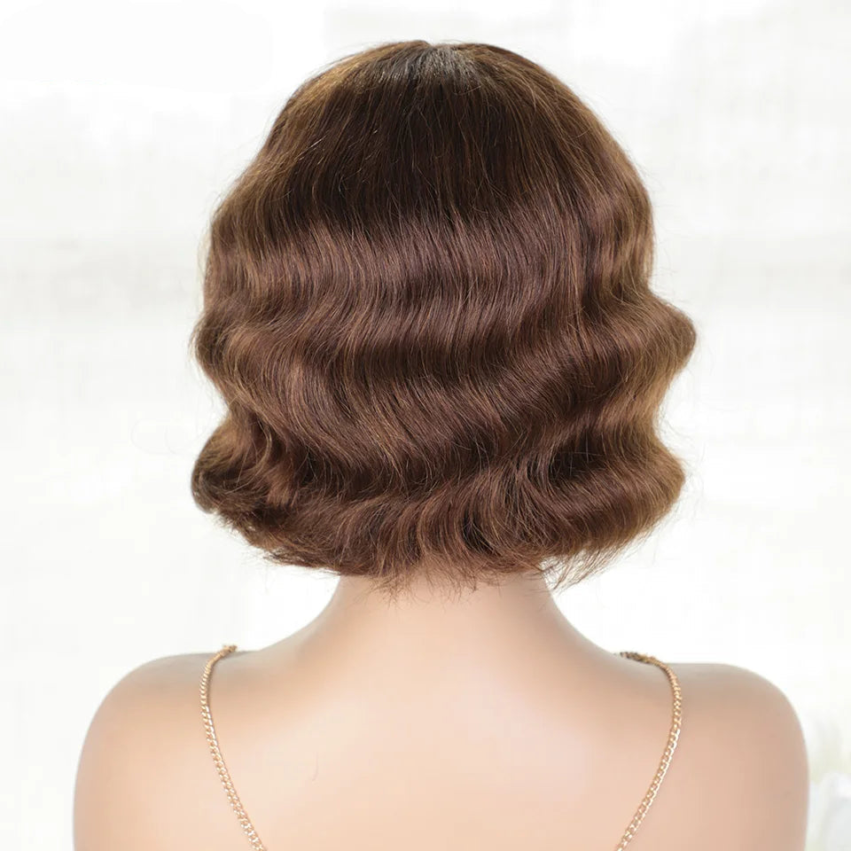 Short Pixie Deep Wavy Bob Human Hair Wigs With Bangs For Women Hair Wigs