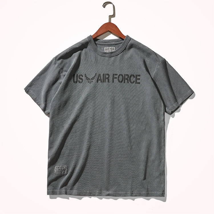 Summer Retro Military Heavyweight T-shirt Men's Cotton Washed Loose Casual Tops