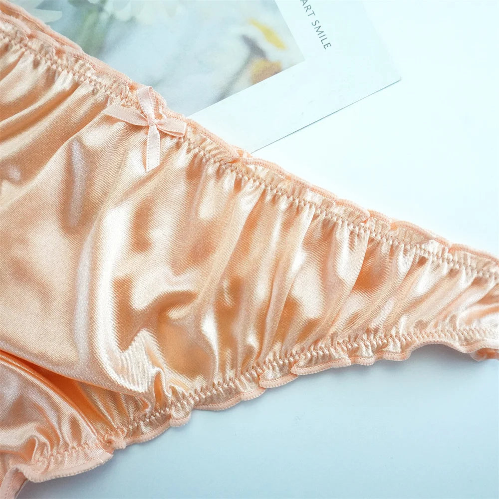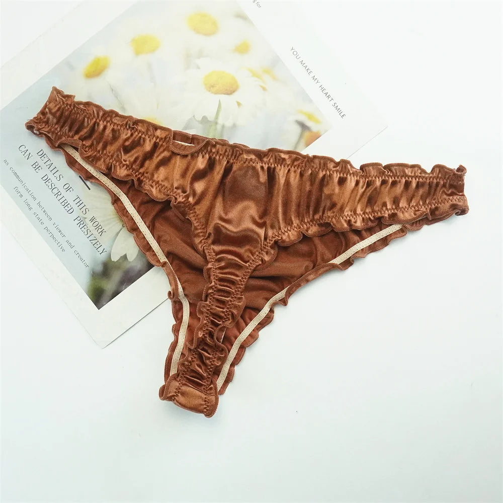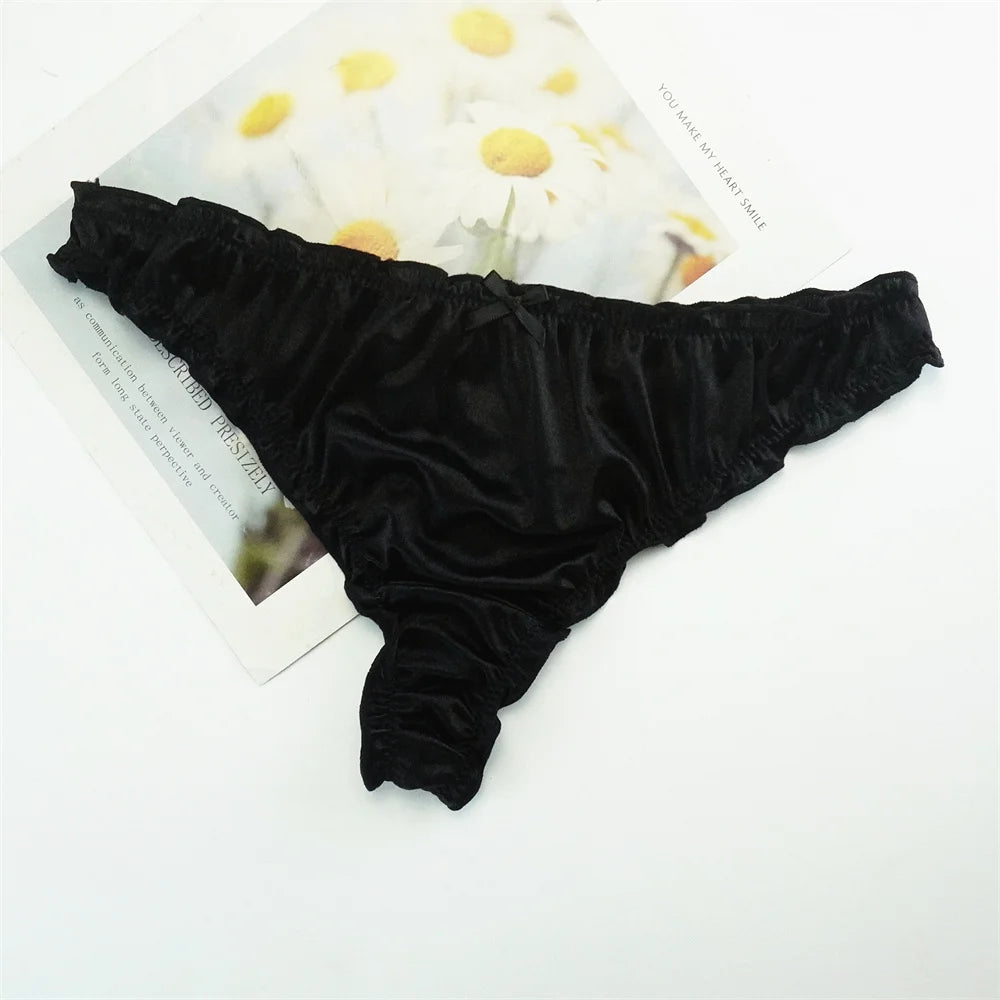 Trim Glossy Satin Silk Thong Women Seamless Elastic T-back Panties Ladies Solid G-strings Underwear
