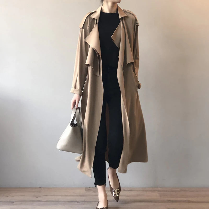 Women Trench Autumn Loose Turn-down Collar Long All Match Female Coats