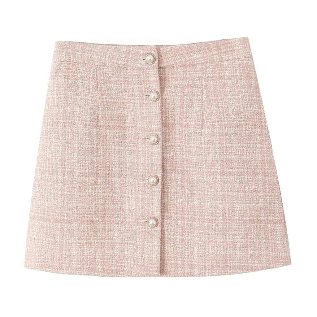 Women Tweed A-line Mini Skirt Office Lady Elegant Autumn Winter Skirts