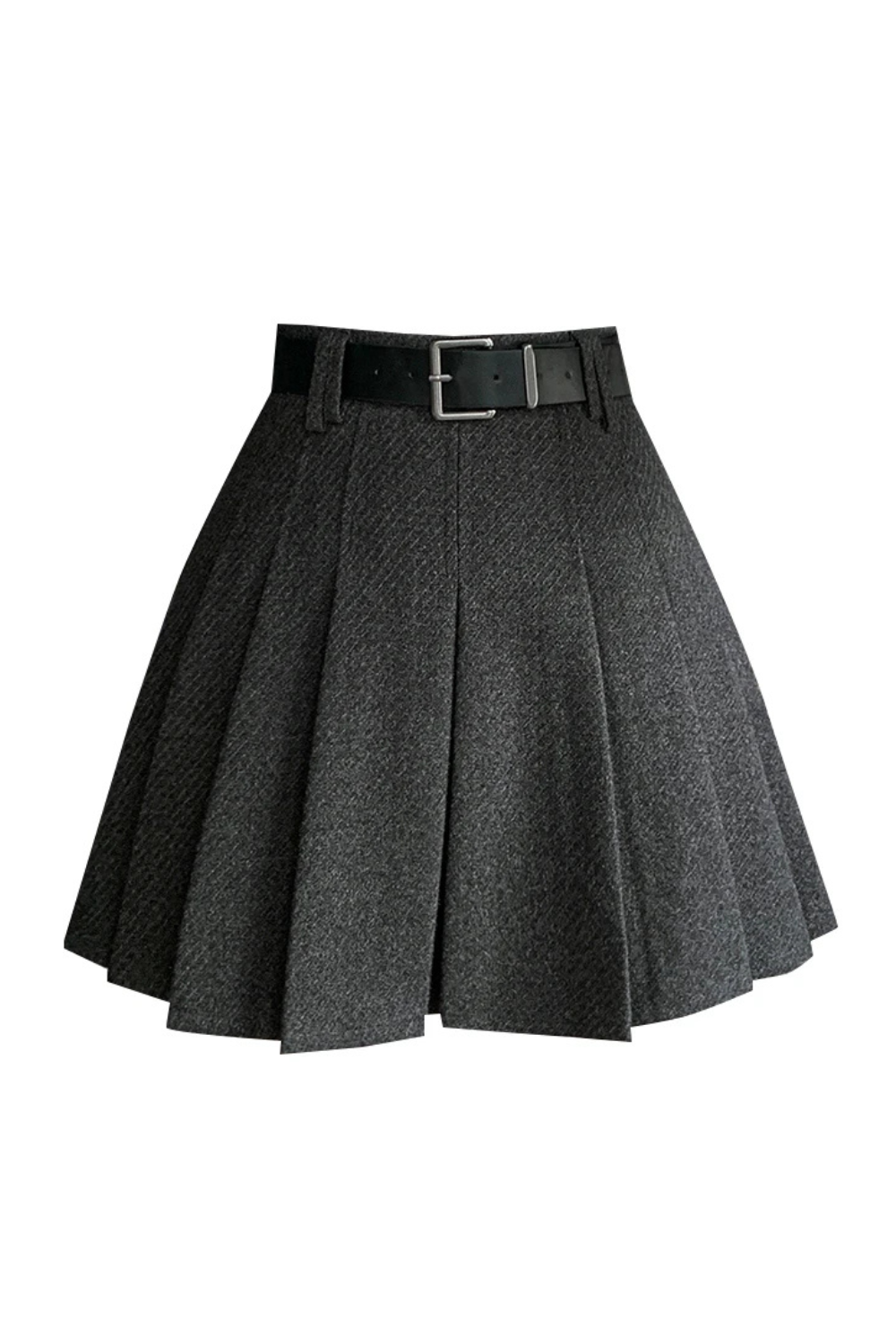 Winter Pleated Mini Skirt Women Woolen Skirts With Shorts Belt Skirt Woman