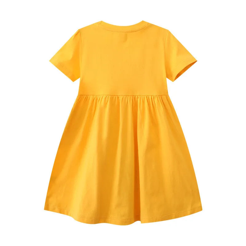 Children's Party Girls Dresses Short Sleeve Princess Birthday Animals Applique Baby Frocks