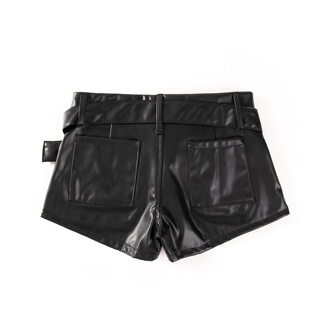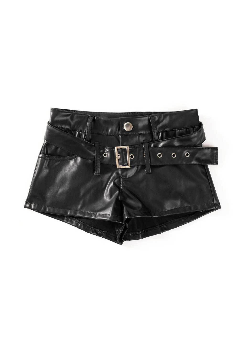 Autumn Women's Faux Leather Booty Shorts with Belt Low Waist Shorts