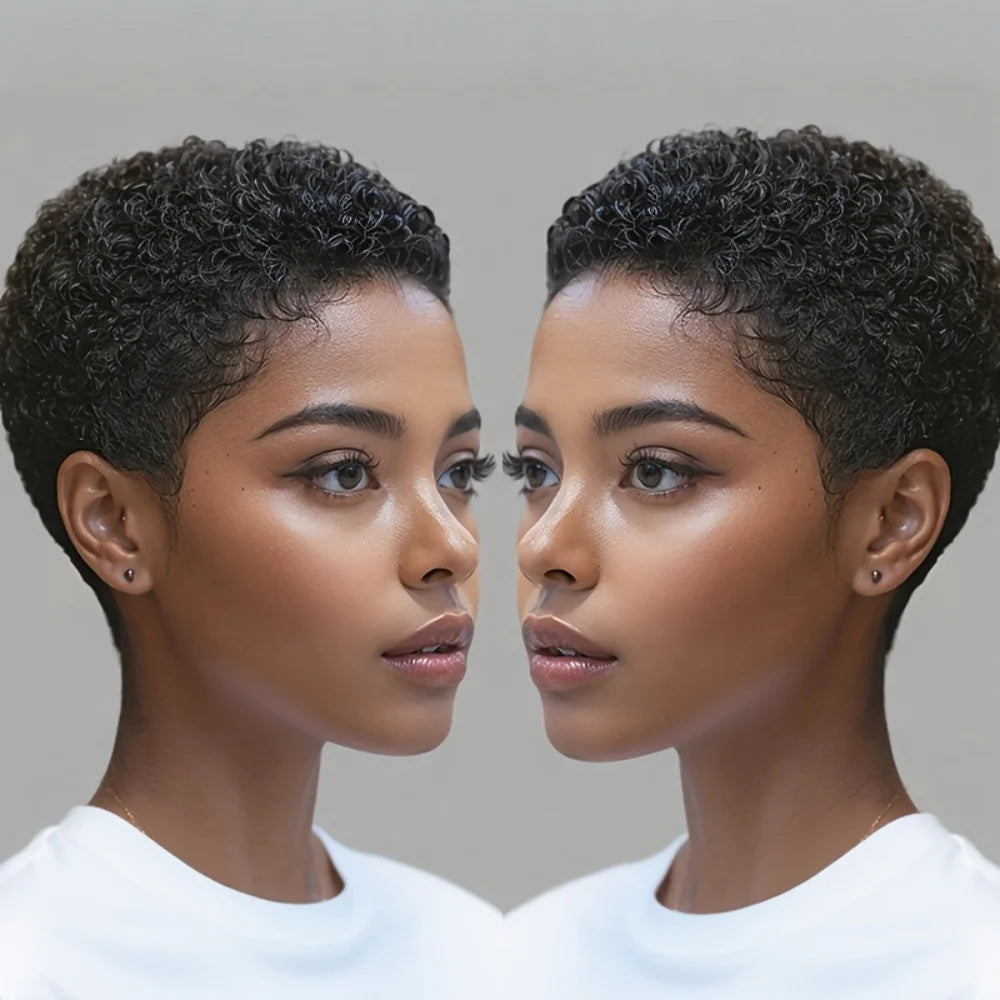 Kinky Curly Human Hair Wig Short Pixie Cut Wig Full Wig for Women