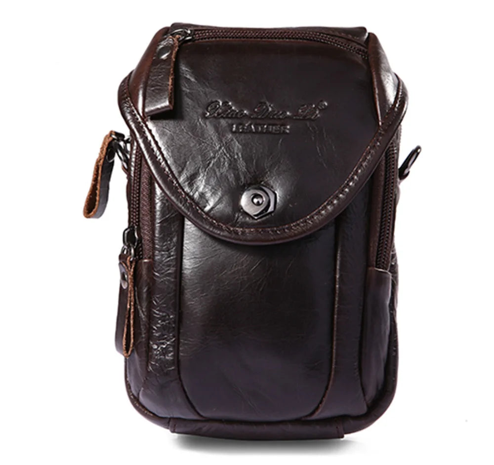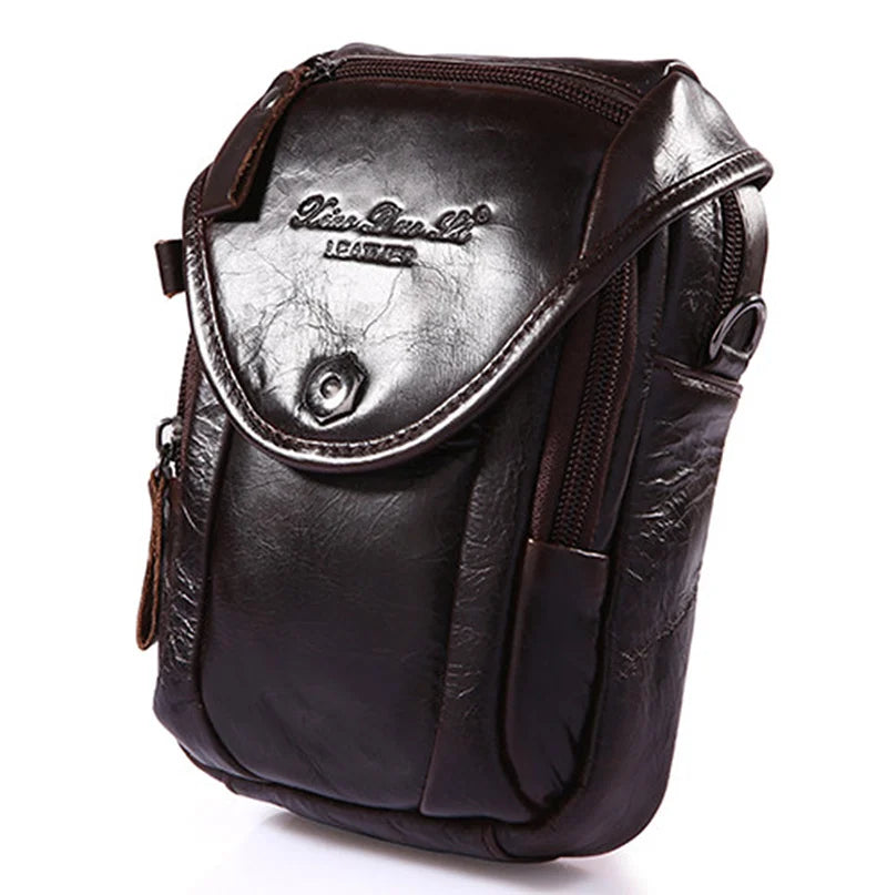 Men Genuine Leather Fanny Waist Pack Small Purse Cigarette Hip Belt Multi-purpose Fashion Real Cowhide Shoulder Cross Body Bag