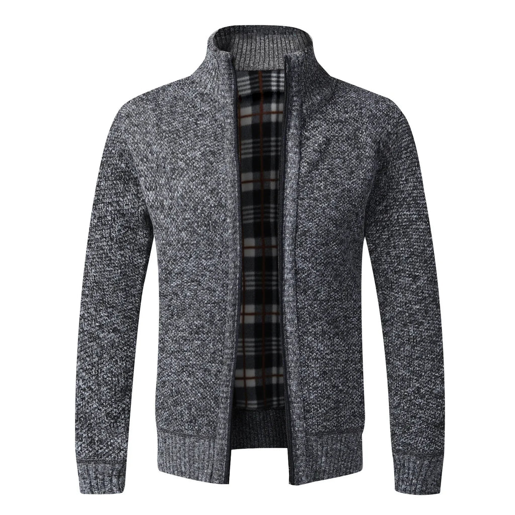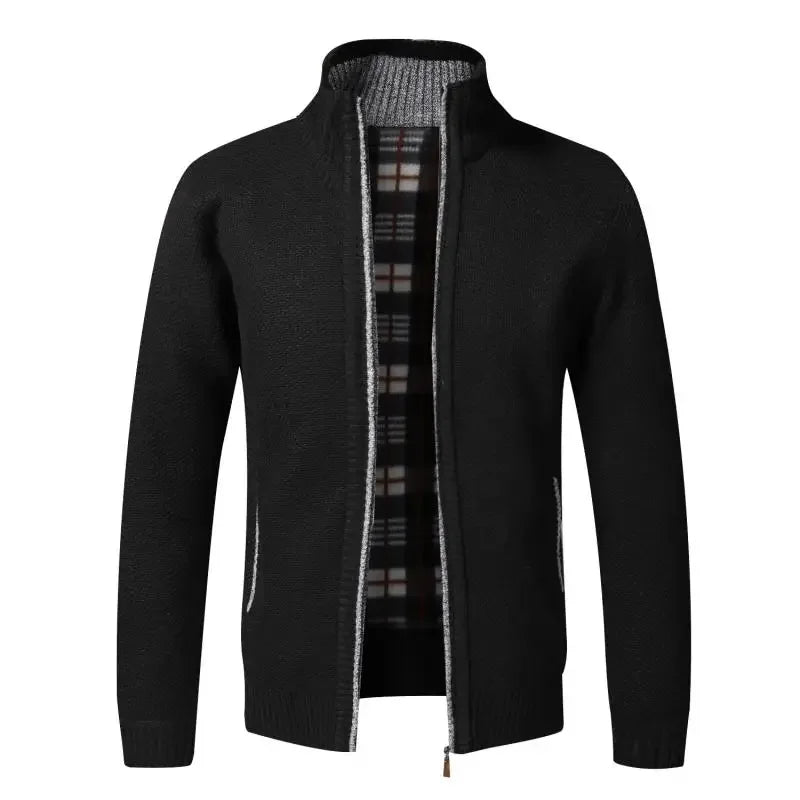 Men's Knit Cardigan Winter Vintage Warm Fleece Clothing Over Slim Fit Sweaters Male Outerwear Coat