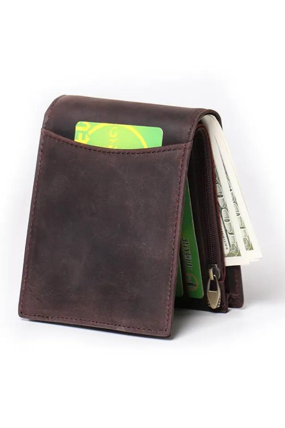 Men's Leather Zipper Foldable Wallet Bank Credit Card Holder Men's Coin Purse Leather Simple Wallet