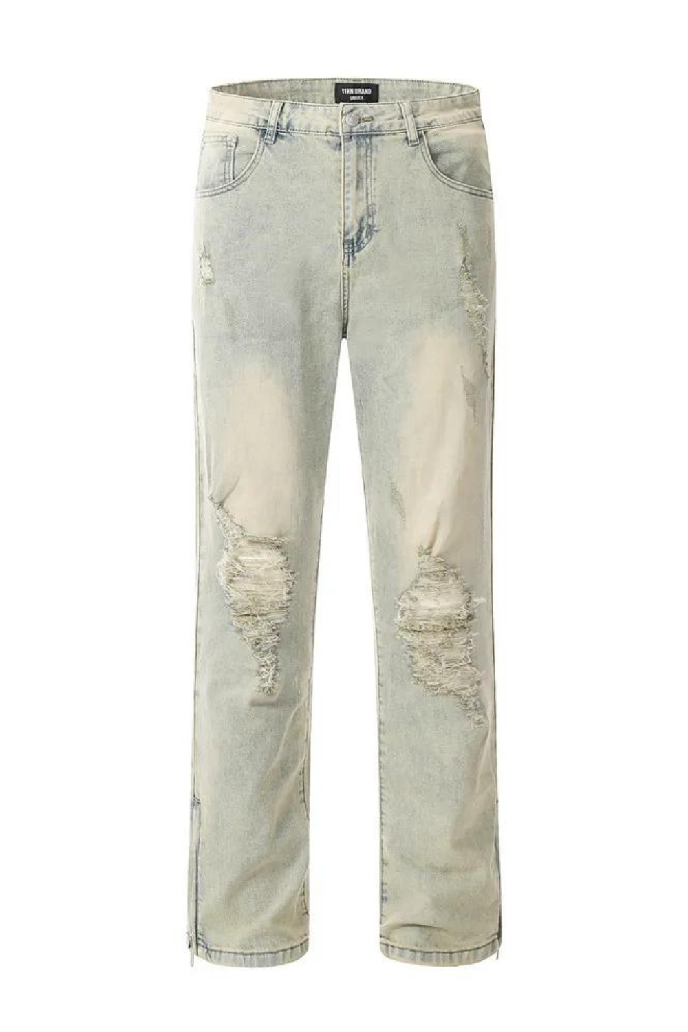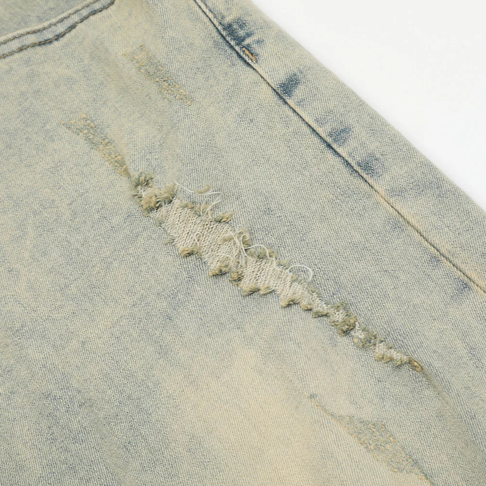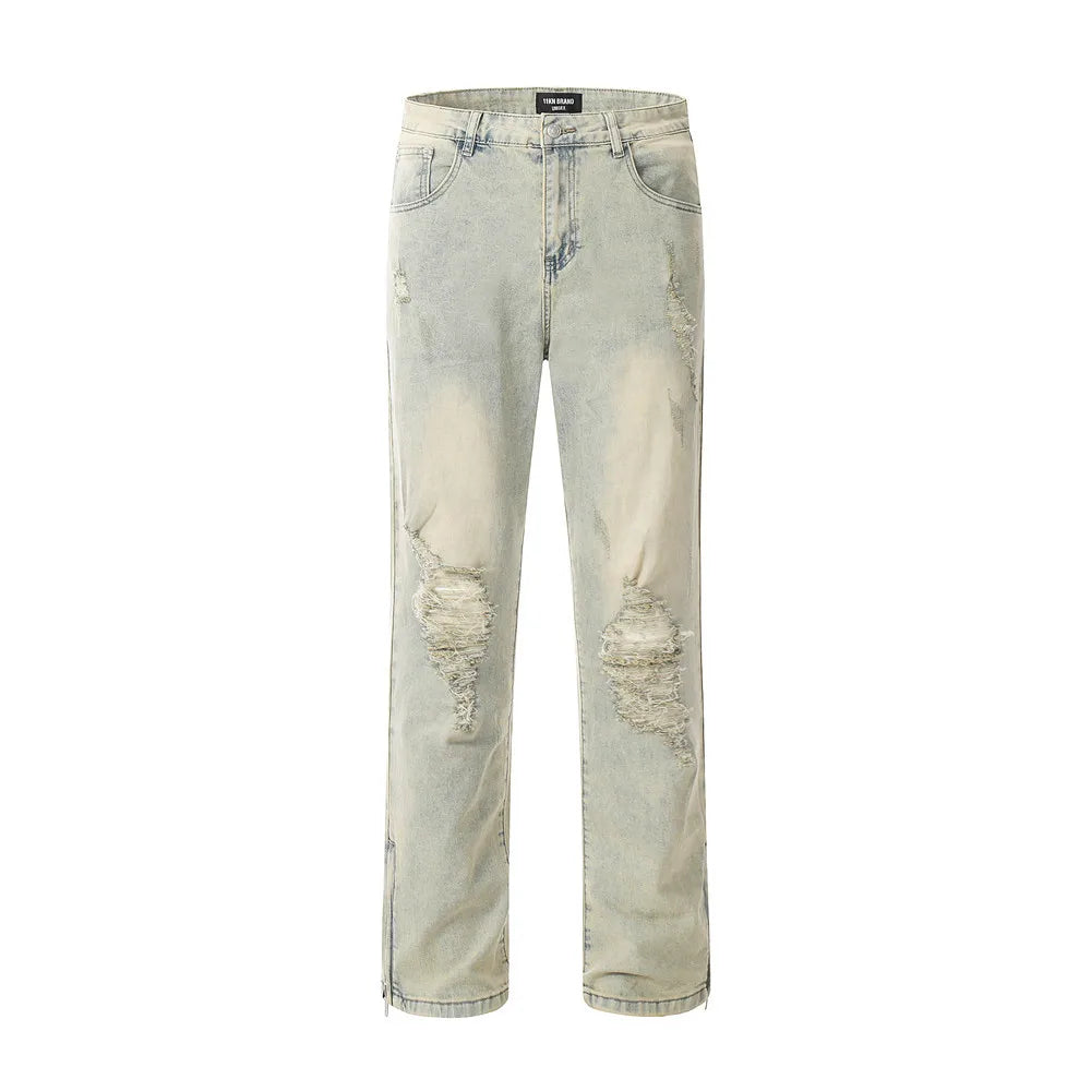 Vintage Denim Pants Men Ripped Hole Jeans Cotton Jean Trousers Hip Hop Retro