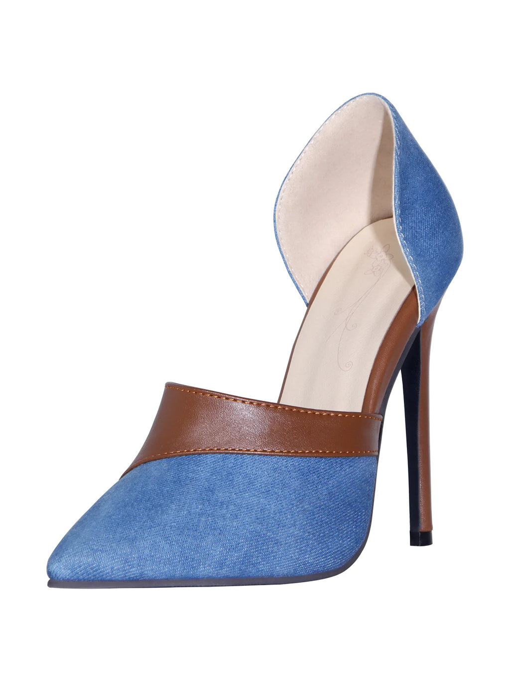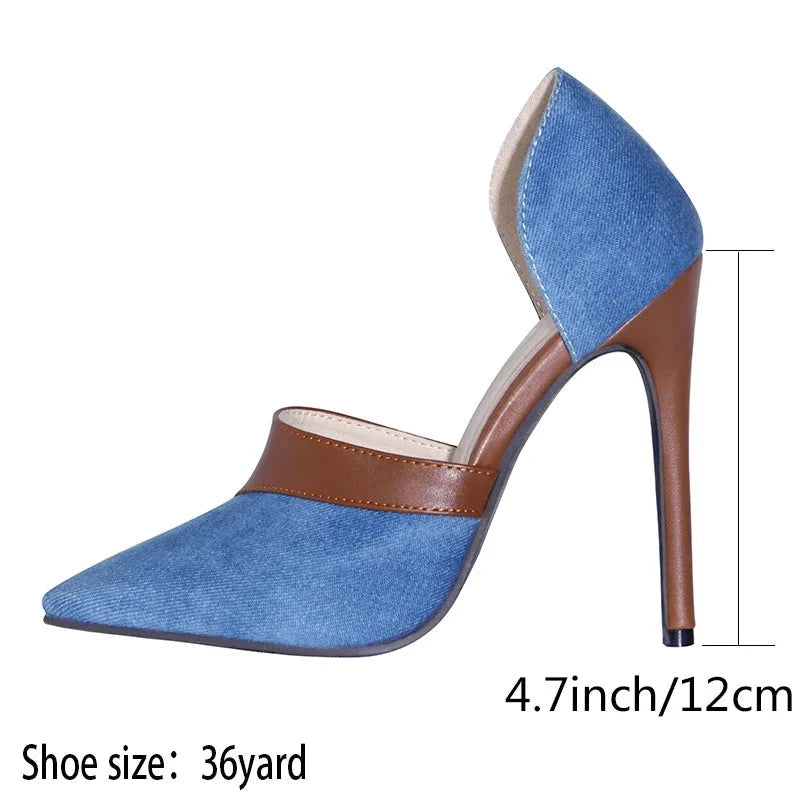 Denim Shoes Women Pumps Summer Spring Women's High Heels Pointed Toe Slip On Slides Lady Shoes