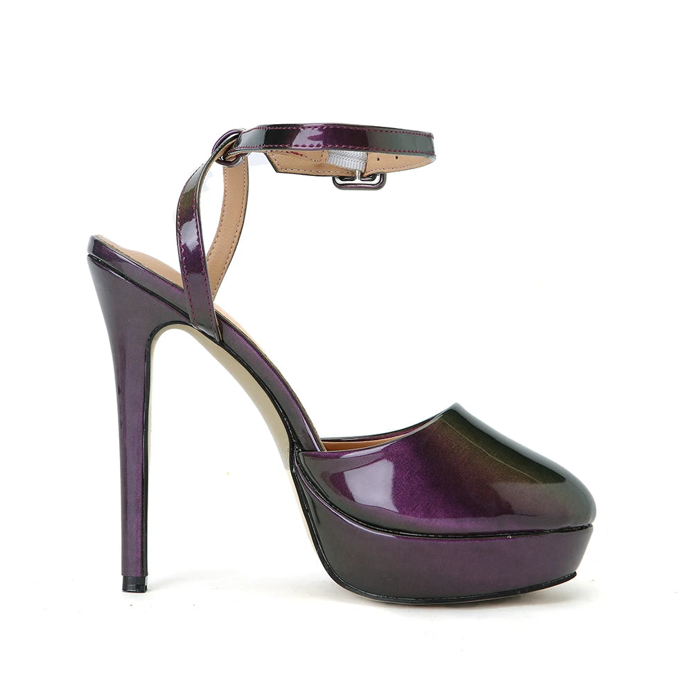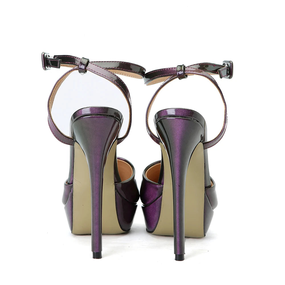 Summer Intrigue Purple Patent Leather Sandals Woman Pointed toe Ankle Strap High Heels Shoes Pumps