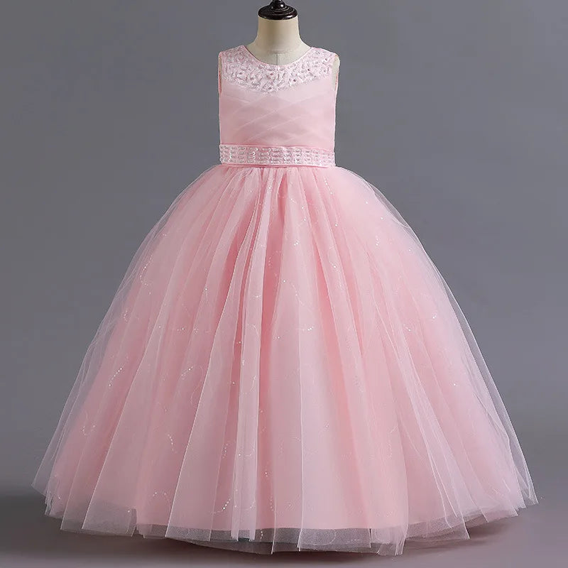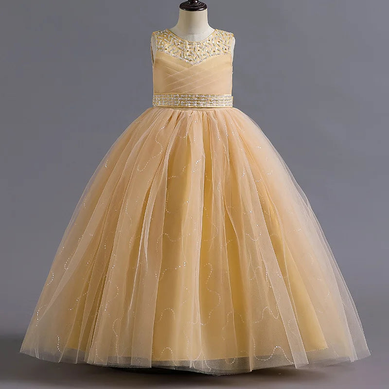 Children's Dress Beaded Sequins Princess Pomfret Dress Long Flower Graduation Evening Dress