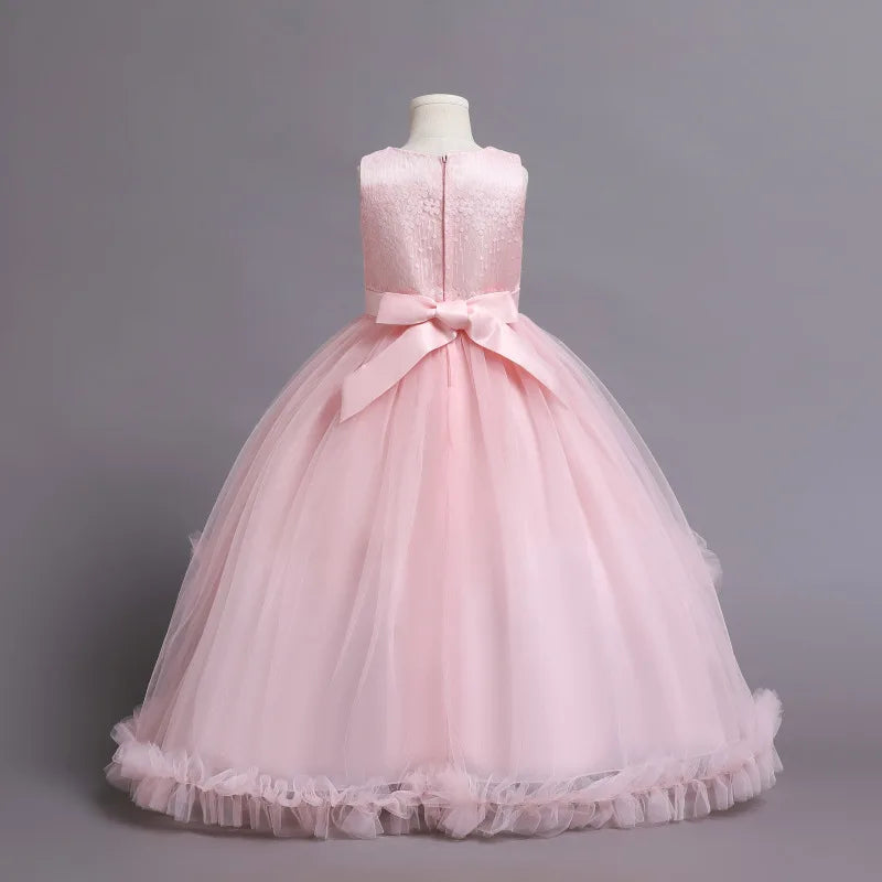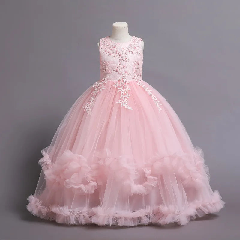 Girls dress princess flower lace long dress birthday communion Party Wedding Dress Embroidery Dress