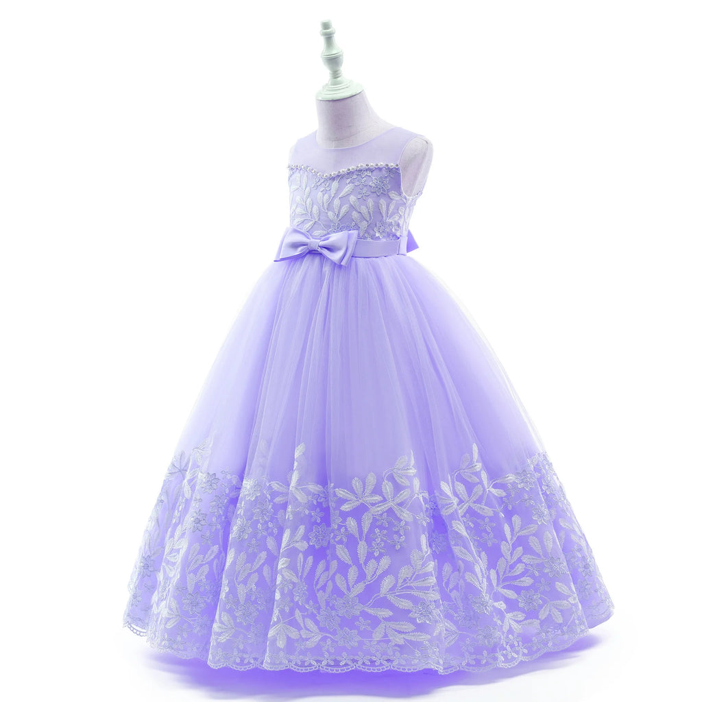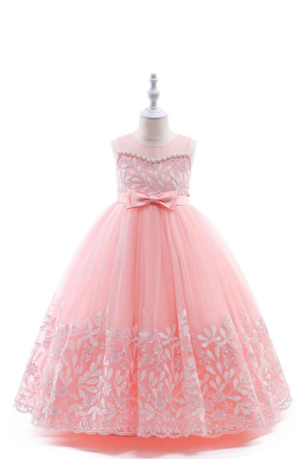Kids Wedding Bridesmaids Long Dresses Beaded Embroidery Lace Children Girls Ball Gowns Dinner Formal Occasion Evening