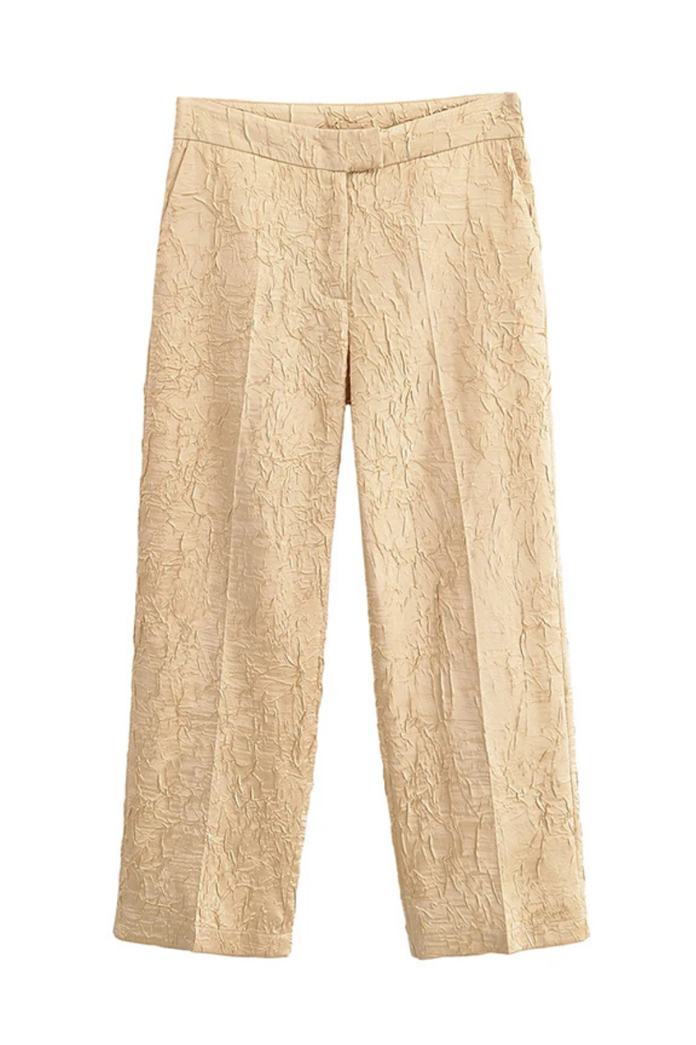 Women Mid-rise Wrinkled Satin Pants Female Straight Trousers