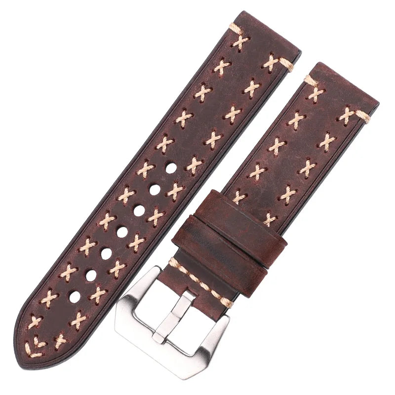 Watchbands Men Watch Band Genuine Leather Thick Watch Strap Belt Stainless Steel Buckle Accessories